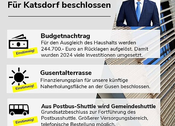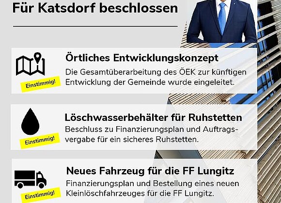 Letzten Donnerstag wurden vom Katsdorfer Gemeinderat in einer konstruktiven Sitzung wieder einige Zukunftsprojekte auf den Weg gebracht: 👇