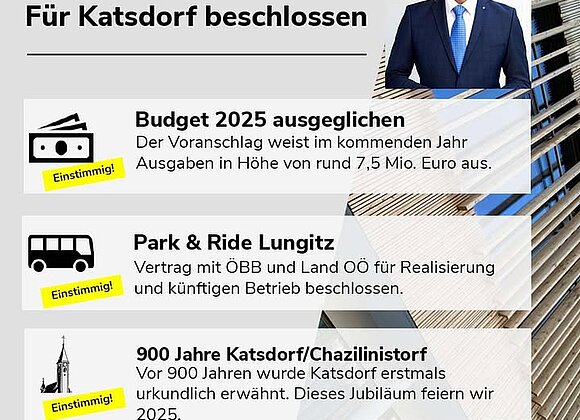Letzte Woche tagte zum letzten Mal im heurigen Jahr der Katsdorfer Gemeinderat. Beschlossen wurde unter anderem 👇